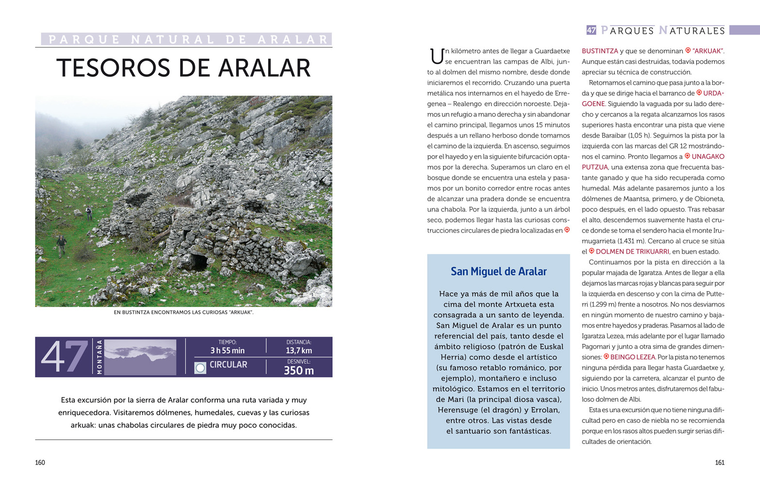 La guía presenta cada excursión con una completa descripción del recorrido, mapa, fotografías y recomendaciones para completar la salida con alguna visita en los alrededores.