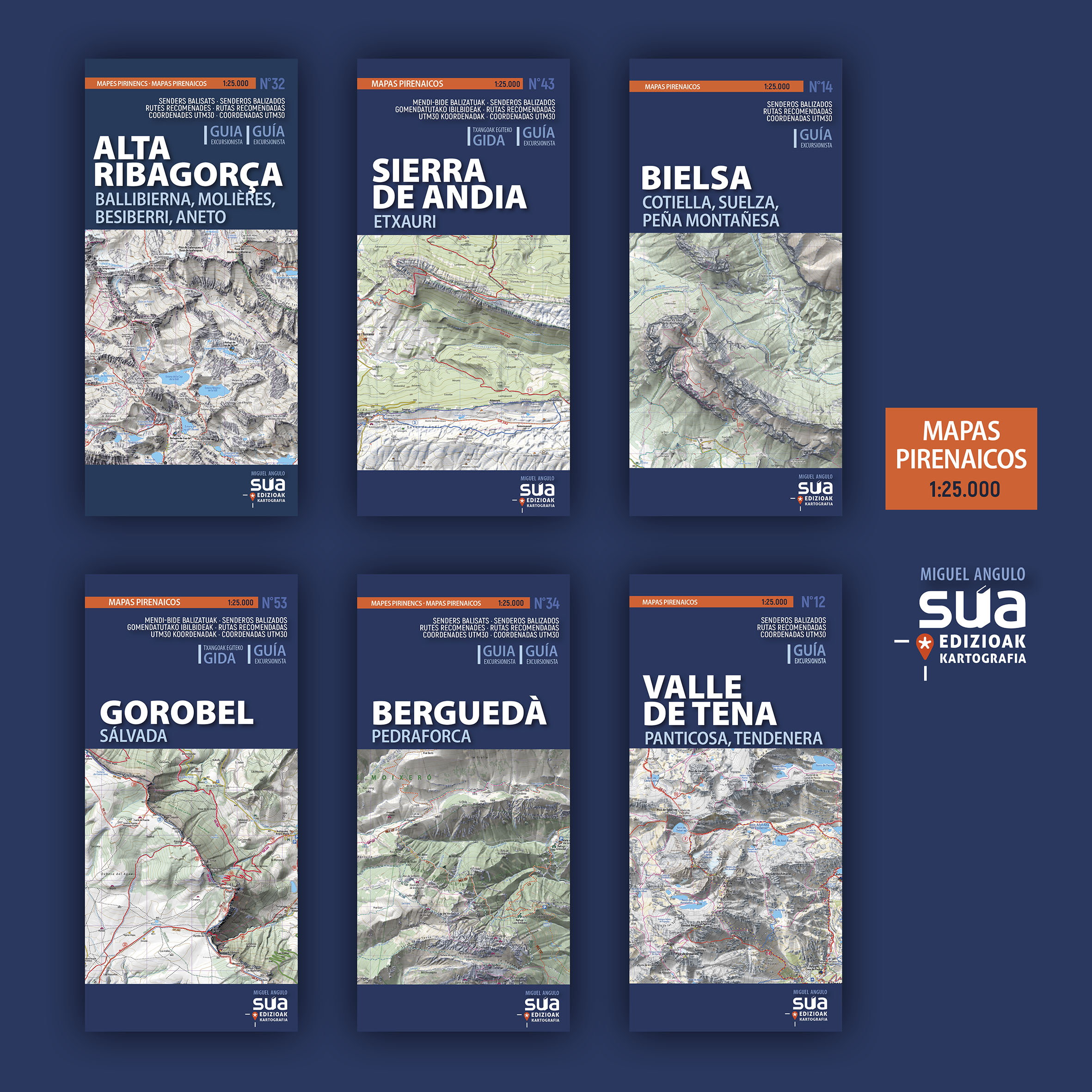 Como es habitual en la colección Mapas Pirenaicos, el autor es el experto cartógrafo Miguel Angulo. Además de este mapa de Gorobel, Sua Edizioak también ha reeditado el correspondiente a la sierra de Andia-Etxauri (Nafarroa), y ha publicado cuatro mapas de la zona pirenaica: Berguedà y Alta Ribagorça (Catalunya) y Bielsa y Valle de Tena (Aragoi).
