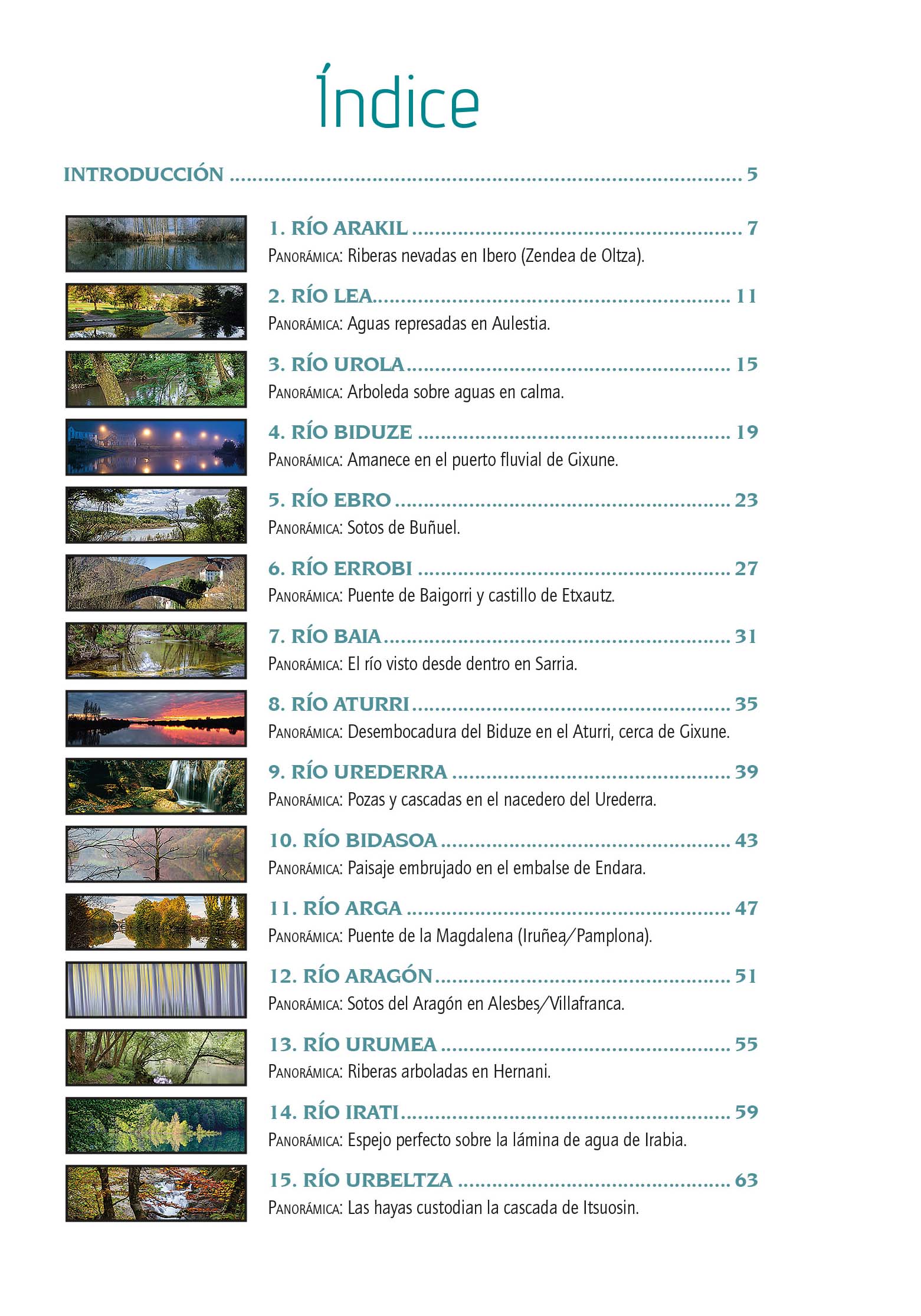 Batzuetan haserre eta oldarkor agertzen badira ere, ibaiak eta errekak edertasunen gordailu izaten dira. Haien ibarretan zuhaitz eta landare asko hazten dira. Animalia sorta luze bat babesten da haien abaroan. Lehengo bizimoduek ere lorratzez zipriztindu dituzte hango eta hemengo uhaldeak. Eta, jakina, ezin aipatu gabe utzi uraren jario etengabe eta liluragarria. Osagai horiekin paisaia gogoangarriak eratzen dituzte eta, gainera, bertatik ibiltzea gehienetan erraza eta atsegina izaten da. Zer gehiago eska genezake? Bada liburu eder batean ibilbide mordoa bilduta jasotzea. Eta horixe da Excursiones por riberas de ríos liburu berriak dakarkiguna.