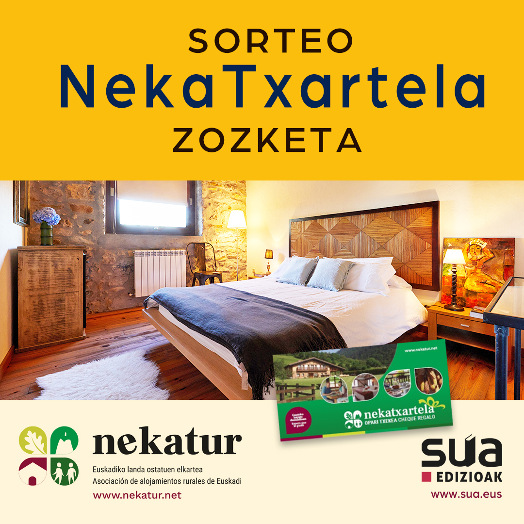 En colaboración con Nekatur, vamos a sortear una Nekatxartela (dos noches y dos desayunos en un agroturismo para dos personas) entre los suscriptores de la colección Euskal Herria Liburuak.